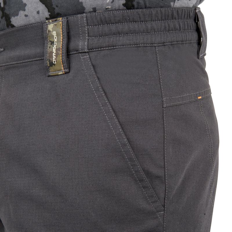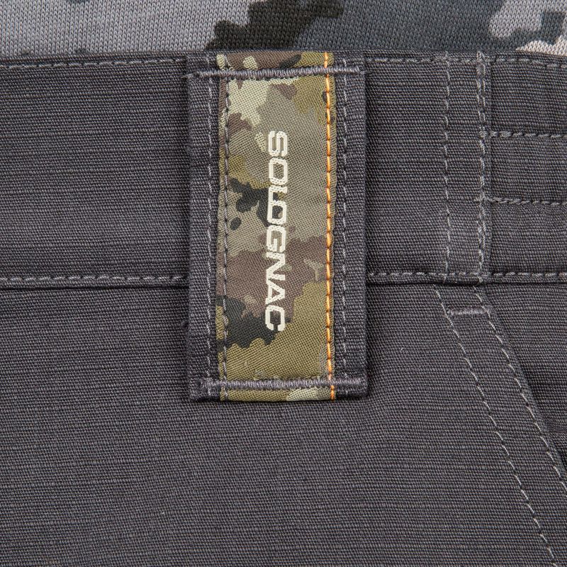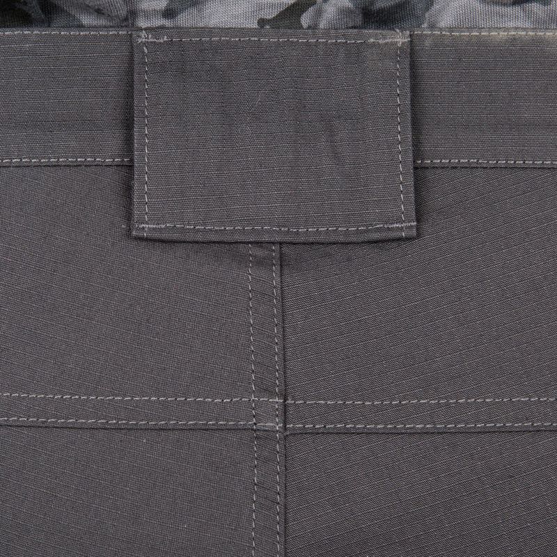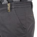 Tecido em algodão Ripstop 250 g/m² (estrutura tecida em lona de paraquedas). Dupla costura de montagem e ponto de remate em todas as zonas de tração: aberturas de bolsos, presilhas, parte inferior da braguilha. Reforço nos pespontos do fecho da braguilha. Linha de costura altamente resistente: 4 pontos/cm.