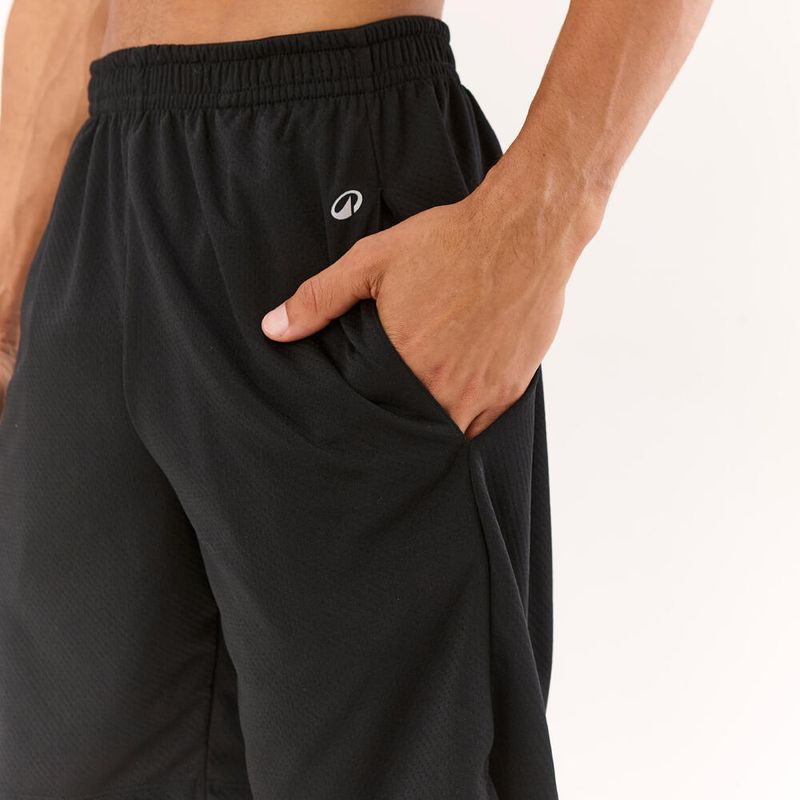 Bermuda shorts em poliamida, com cós de elástico respirável. Bermuda shorts em malha texturizada, leve e ajuda a eliminar o suor durante a prática. Design funcional, permitindo movimentos multidimensionais. Cós com elástico interno.