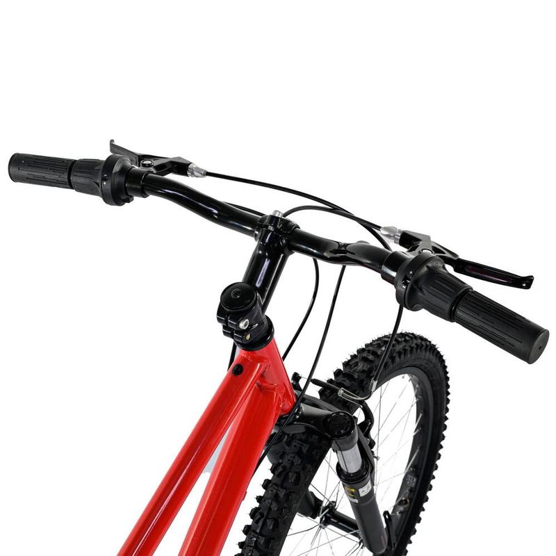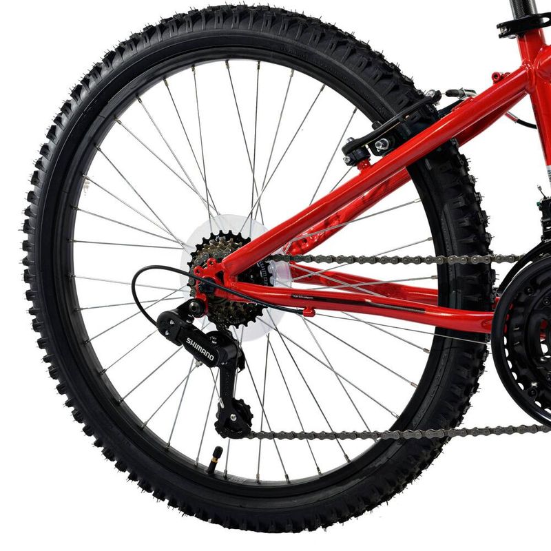 Aros de alumínio de parede simples / Cubos dianteiro e traseiro em alumínio de 36 raios) / Raios de aço / Pneus de uso misto tamanho 24x1.95 / Rodas dianteira e traseira com blocagem rápida