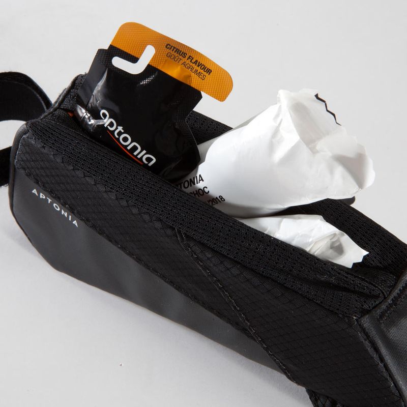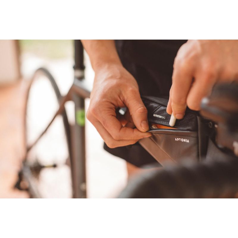Desenvolvido para o Triatleta que busca uma solução simples e eficaz para transportar seus itens de nutrição durante a pratica. Instalada de forma fácil e prática na parte frontal superior do quadro, a bolsa de nutrição transporta os géis, as barras energéticas e os documentos.