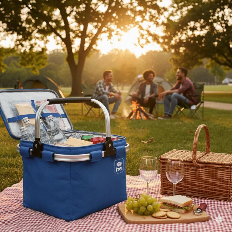 Mantém a temperatura por mais tempo.Possui cabo de alumínio e empunhadura emborrachada.Cores/impressões variadas. Possui uma estrutura de poliéster reforçado com revestimento de EPE/PVC para manter a temperatura, uma alça de alumínio emborrachada.Compacto, durável e em cores variadas.