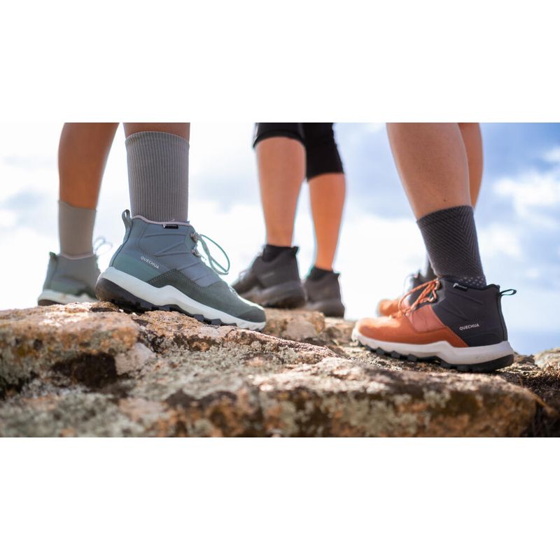 Bota ecodesenhada impermeável para a praticante que caminha regularmente. Enfrente as trilhas na montanha com os pés bem protegidos e confortáveis Caminhe confortavelmente: O calçado que se adapta ao seu pé. Caminhe em segurança: cano em couro com proteção da biqueira em borracha e sola aderente, elevado amortecimento.