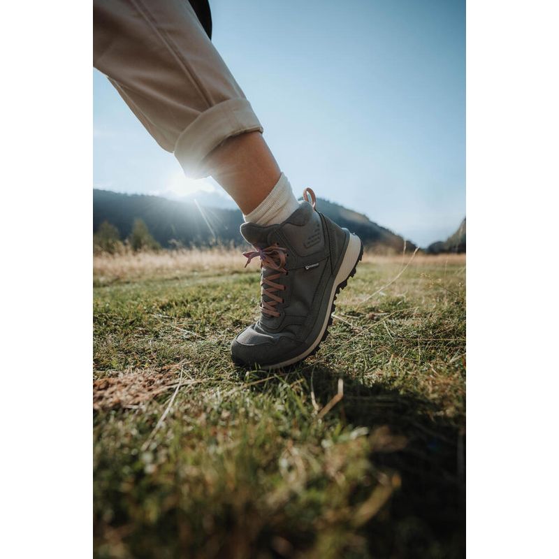 Impermeável, para que os pés se mantenham secos. Com uma sola que favorece um bom amortecimento e aderência, cano subido para um bom apoio, tem todos os ingredientes para caminhadas descontraídas na planície, na floresta ou ns montanha.