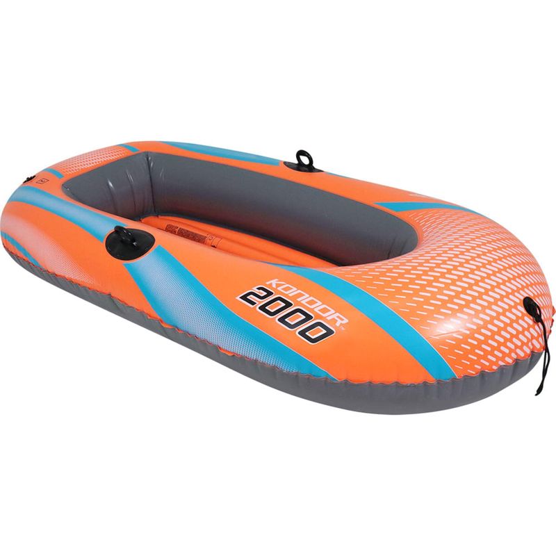 Design em PVC resistente, inclui remos e bomba de ar manual para aventuras instantâneas.