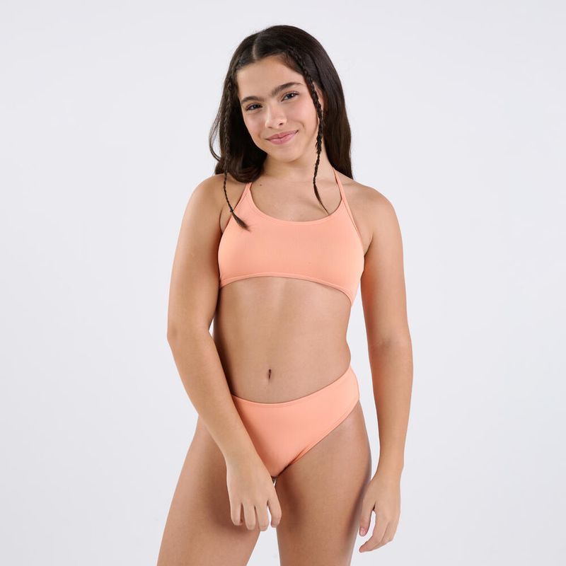 Calcinha de Biquíni Infantil de Surf Cintura Alta Tribord Laranja