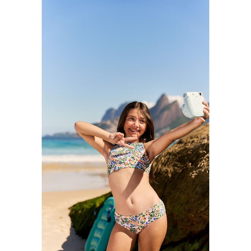Biquíni projetado para praticantes regulares de surfe e/ou outros esportes aquáticos. Calcinha de biquíni com recortes laterais e franzidos