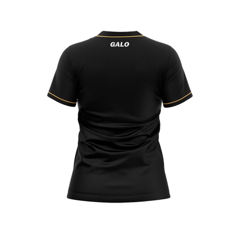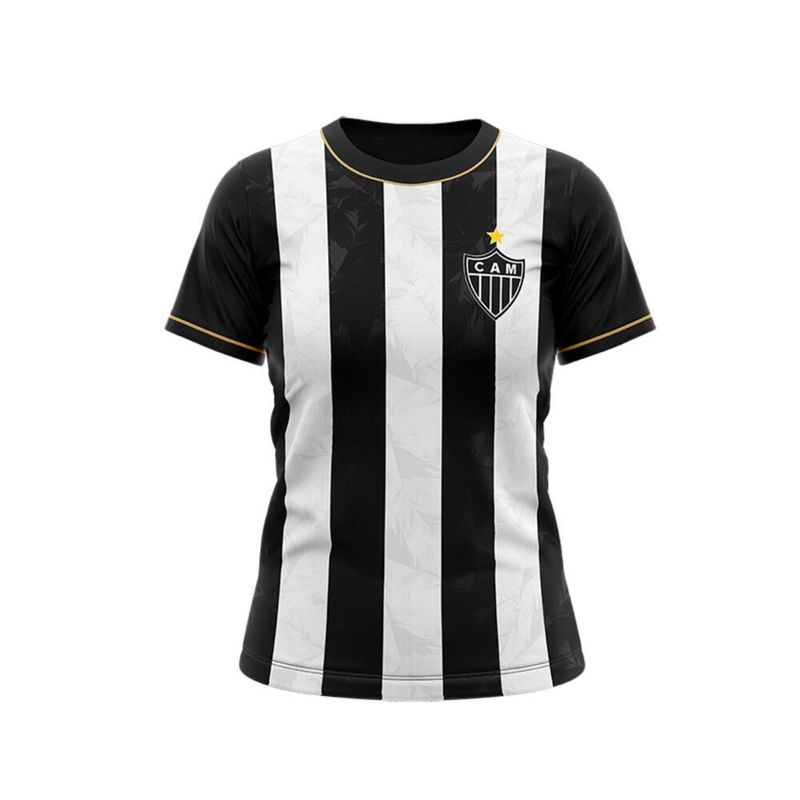 Camiseta desenvolvida para uso casual Camiseta com vivos dourados no punho e na gola. Além disso, a peça leva estampa de toque zero de listras pretas e brancas com padronagem inspirada nas penas do Galo, mascote do clube.