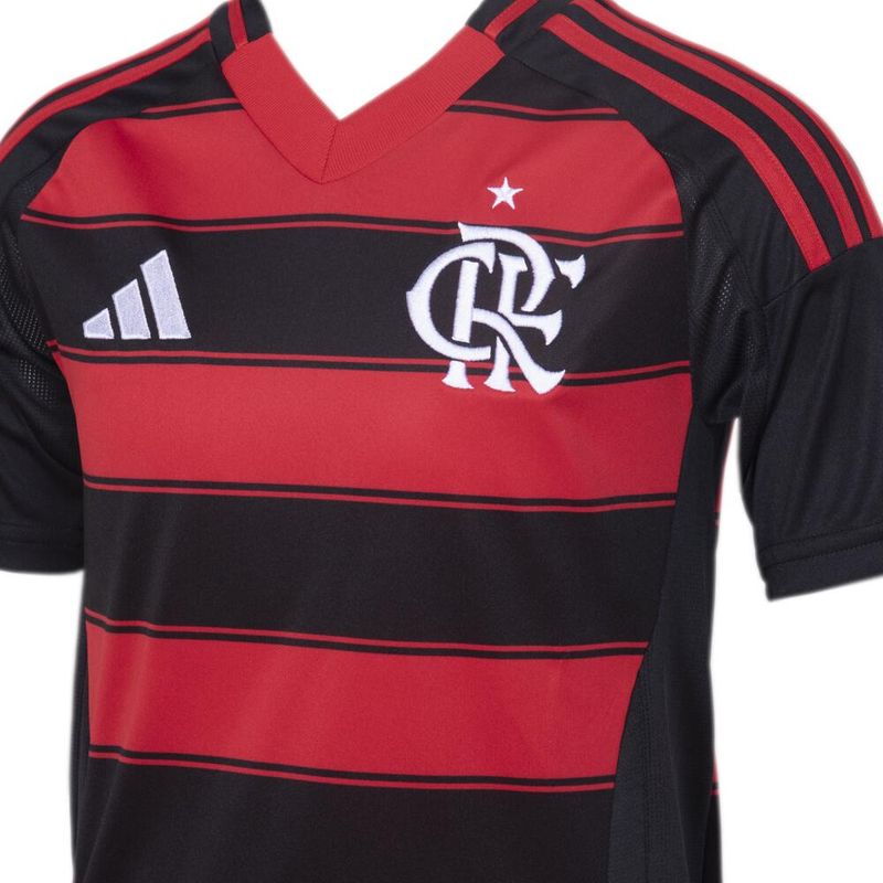 Sinta sua paixão pelo futebol aumentar cada vez que você vestir esta camisa home adidas da CR Flamengo, os icônicos aros vermelhos e pretos do CR Flamengo recebem um leve ajuste gráfico para um visual novo, mas é aquela homenagem ao mascote do clube Urubu que realmente chama a atenção.