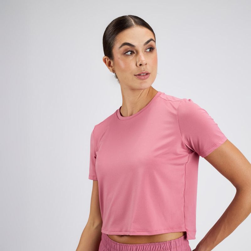 Camiseta Crop Fit Feminina de Fitness 120 Rosa