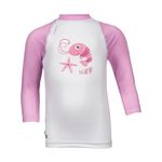 Camiseta desenvolvida para proteger os bebês do sol durante suas atividades aquáticas. Oferece também secagem rápida, repelência à areia e costuras flat. Material tecnológico FPU 50+: bloqueia pelo menos 98% dos raios UVB e 95% dos raios UVA, dentro ou fora da água. As costuras flat internas diminuem as irritações da pele em contato/ atrito com a peça.