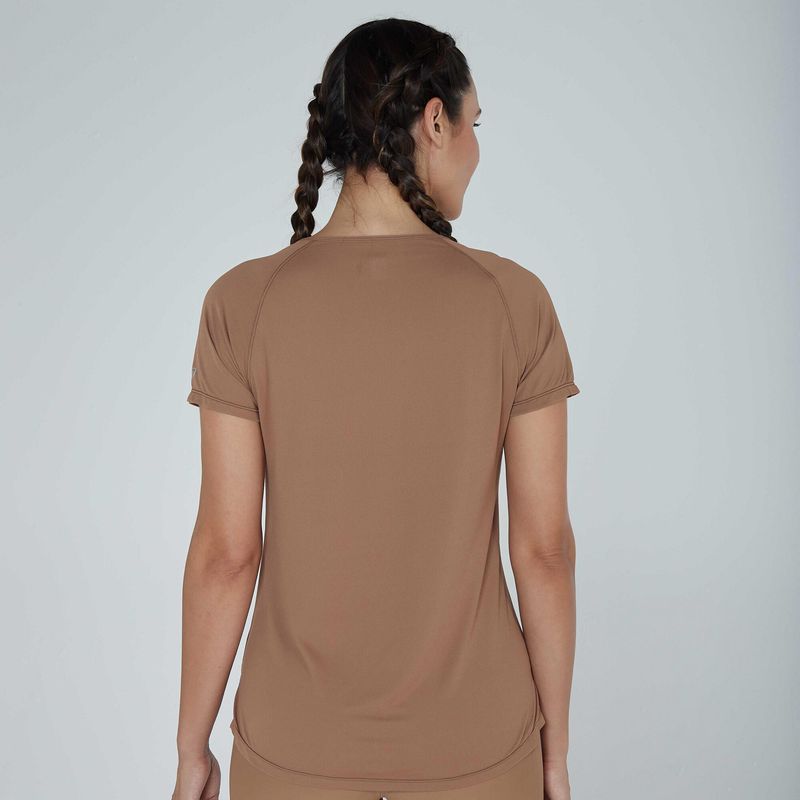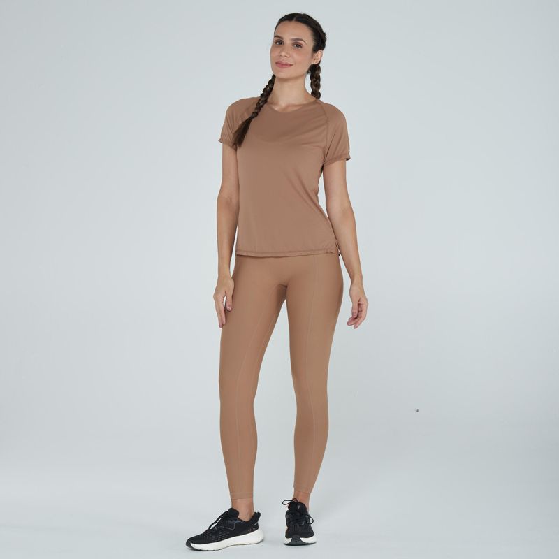 Possui um tecido que ajuda a transferir o suor e seca rapidamente.
