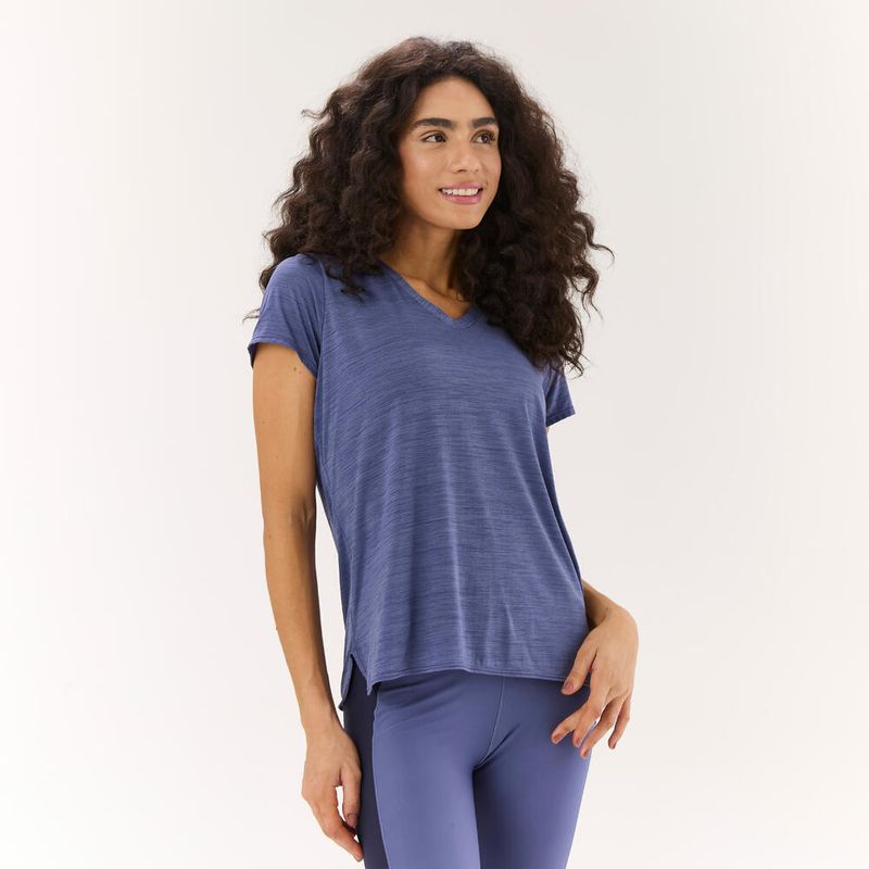 Esta camiseta extensível, respirável, com um corte largo, foi desenvolvida para todas as praticantes de esporte que procuram conforto sem sacrificar o estilo. Esta é a camiseta da temporada. Com o seu tecido esportivo respirável e extensível e os pormenores técnicos (body mapping e recortes), é perfeita para ser usada sobre um top para maior conforto.