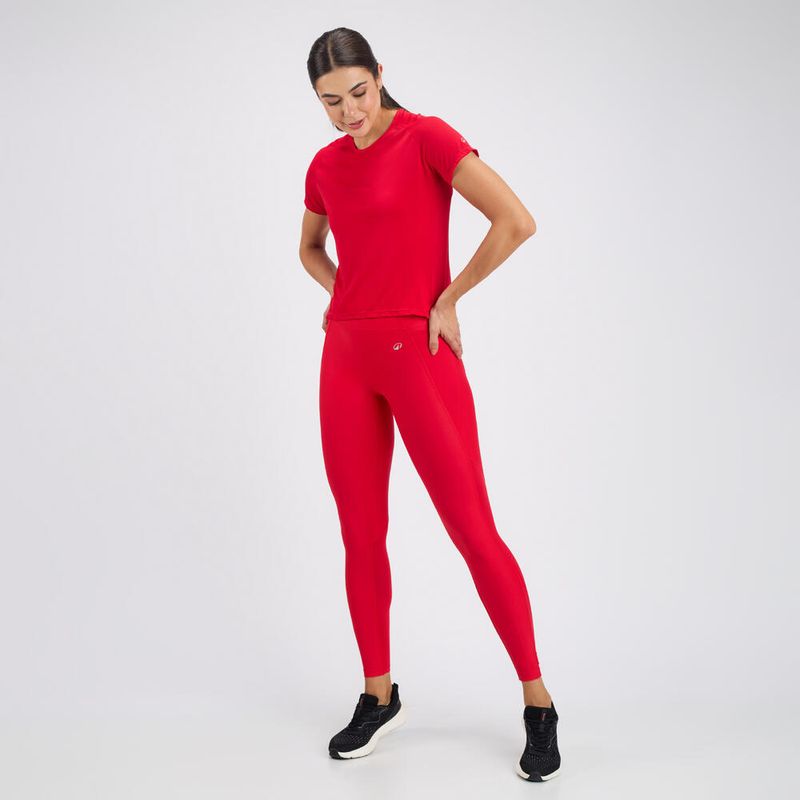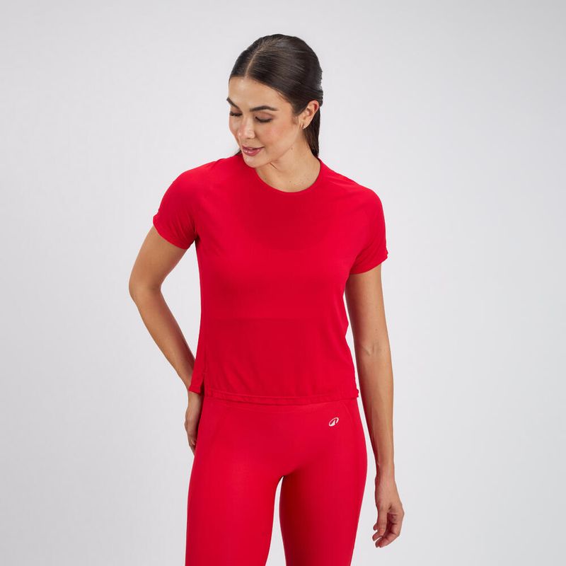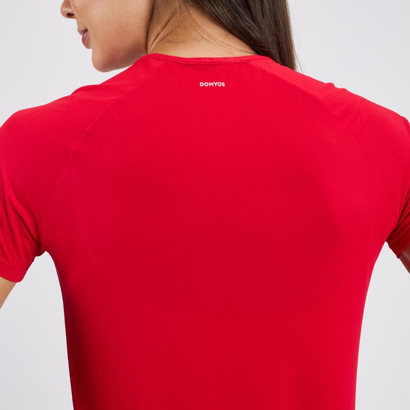 Camiseta Feminina de Treino 500 Creponada Domyos Vermelho