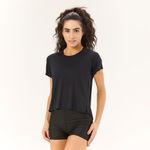 Desenvolvido para a prática de exercícios e treinos de Cardio Fitness. Design folgado e comprimento alongado. O tecido crepe fresco ajuda a afastar a transpiração. O design apresenta costas com tecido microperfurado.
