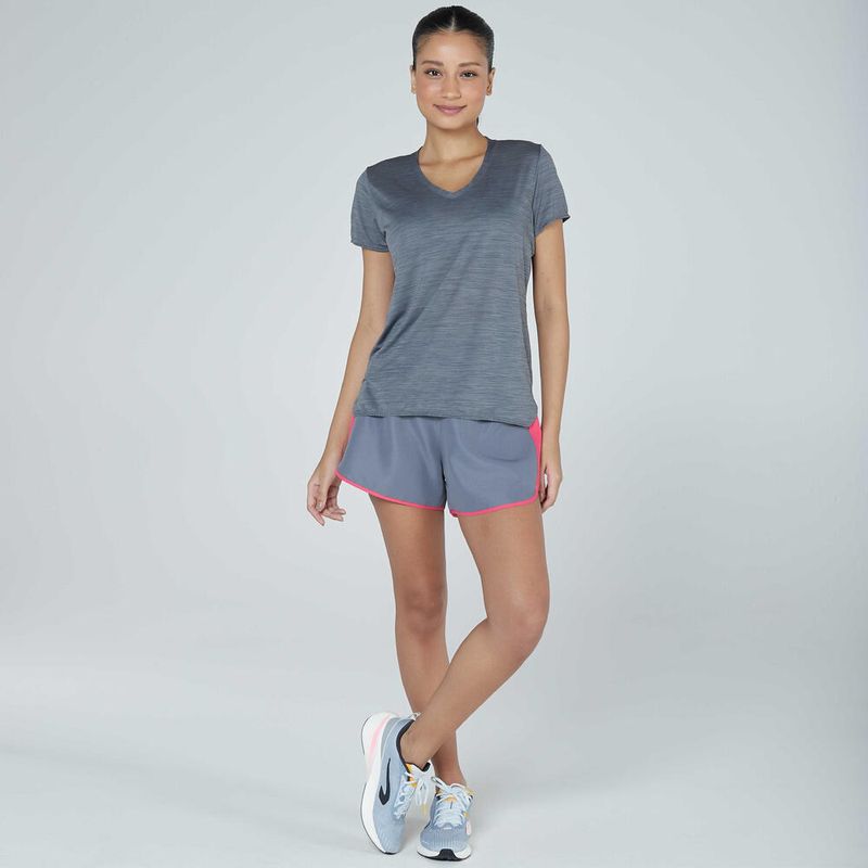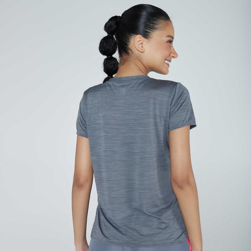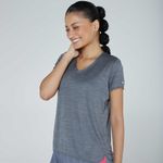 Esta camiseta corre o risco de se tornar seu item favorito do kit esportivo. Seu tecido macio torna-a agradável de usar. O tecido também remove a transpiração para que você se sinta seco enquanto se exercita, é elástico para mantê-la confortável enquanto se movimenta e é leve para que se sinta bem contra sua pele. Basicamente, o conforto é rei, e nós adoramos isso!