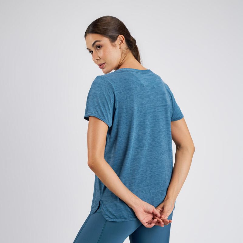 Esta camiseta corre o risco de se tornar seu item favorito do kit esportivo. Seu tecido macio torna-o agradável de usar. O tecido também remove a transpiração para que você se sinta seco enquanto se exercita, é elástico para mantê-lo confortável enquanto se movimenta e é leve para que se sinta bem contra sua pele. Basicamente, o conforto é rei, e nós adoramos isso!