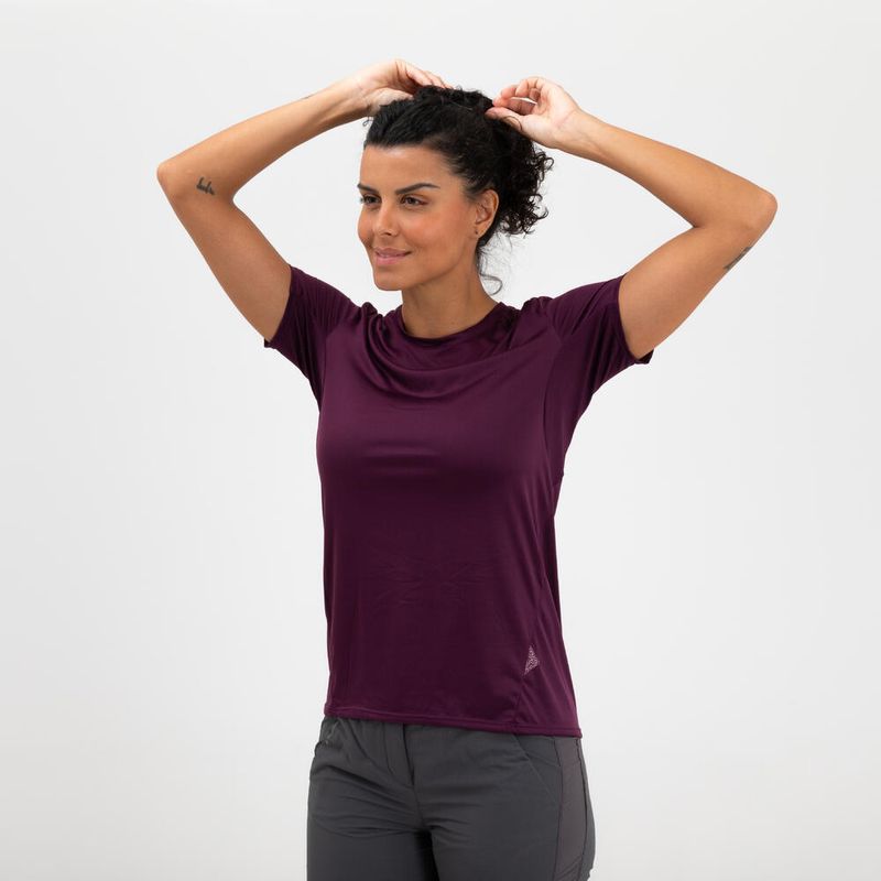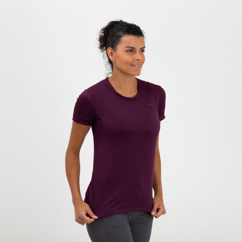 Camiseta Feminina de Trilha Básica Quechua MH100 Roxo-escuro