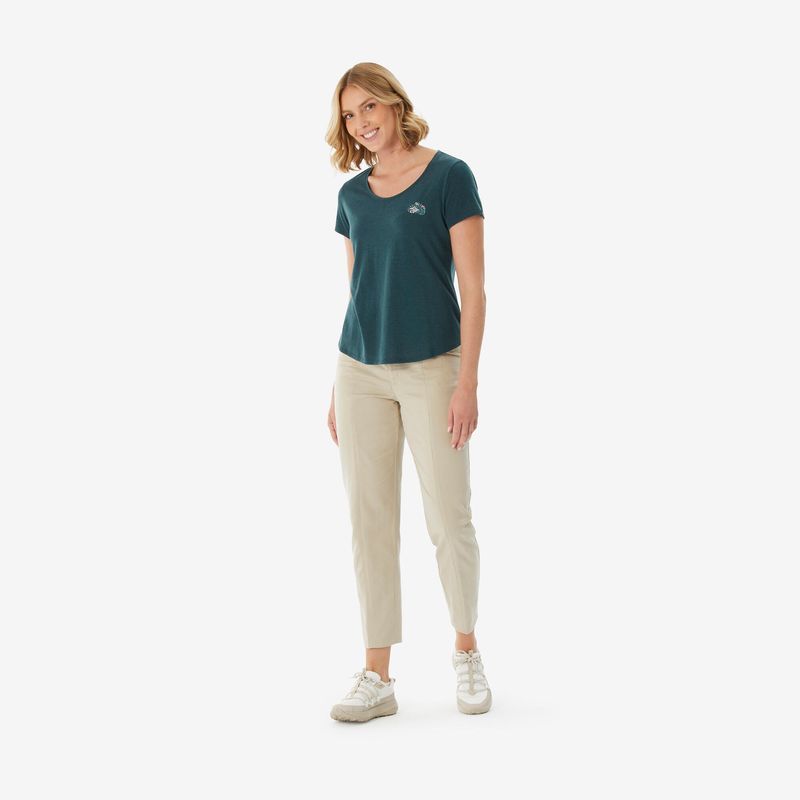Camiseta Feminina para Trilha MH500 Quechua Verde Escuro