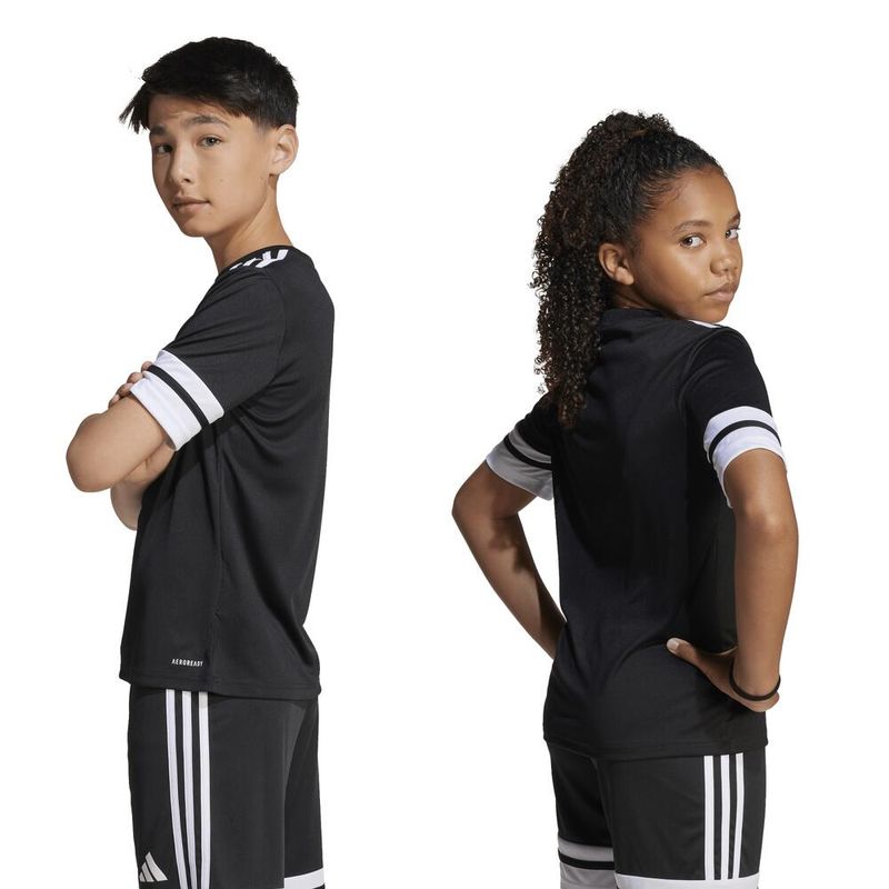 Camiseta juvenil adidas com tecnologia AEROREADY e design personalizável. Ideal para jogar com estilo e conforto. Camiseta juvenil adidas com gola careca canelada e 3 listras icônicas.
