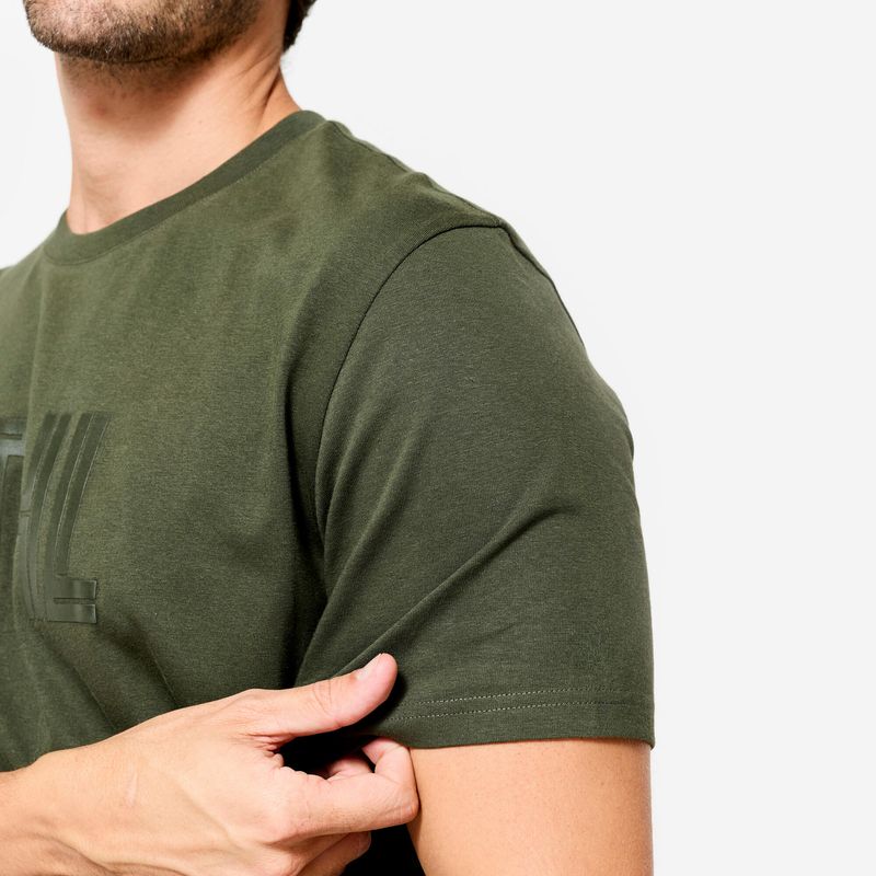 Esta camiseta de ginástica e pilates para homem, de concepção ecológica, com 30% de algodão reciclado, pode ser usada tanto no ginásio como na cidade! Esta camiseta masculina estampada é desenhada para estilo, tanto nos treinos como no dia-a-dia. A nossa escolha de material contribui para a durabilidade do produto.