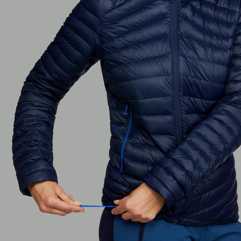 A capacidade de enchimento e resistência da jaqueta de penas garante 3 características para a trilha: Isolamento térmico graças ao ar retido nas penas e na plumagem. Extrema leveza: com o mesmo calor, as penas são mais leves do que uma espuma sintética. Isso permite carregar menos peso na mochila. Alta compressibilidade