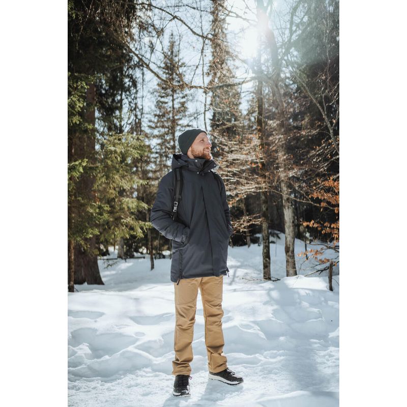 Sua jaqueta foi projetada com um revestimento externo à prova d'água que bloqueia a passagem de água e vento. No inverno, para se manter aquecido, você também precisa proteger suas extremidades (cabeça, mãos e pés). O capuz com pele sintética removível, os punhos e a gola alta protegem contra o frio. Os bolsos altos para aquecimento das mãos com forro de lã são perfeitos para proteger suas mãos em uma posição confortável.