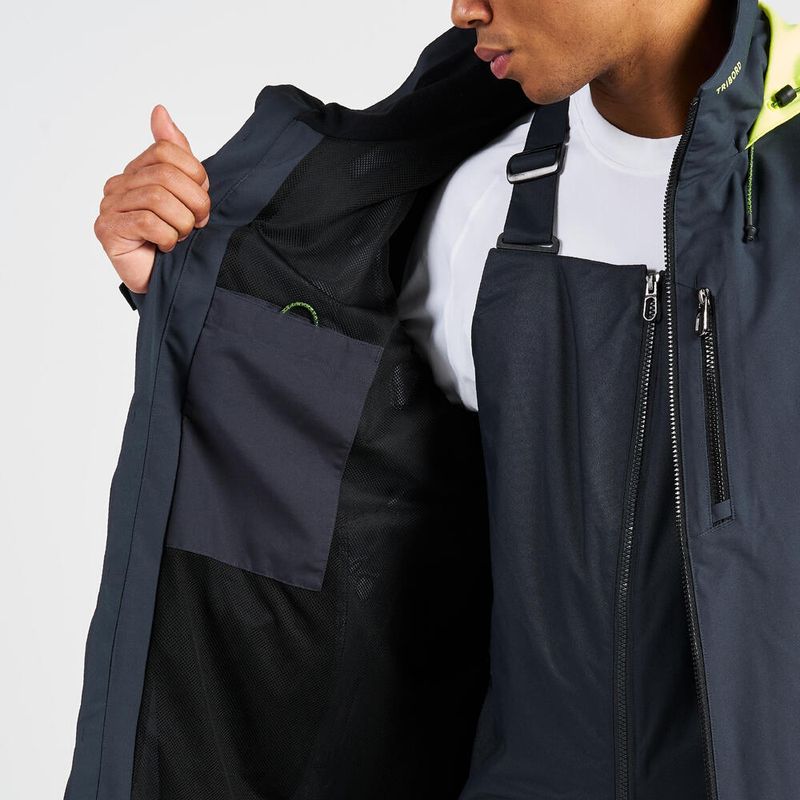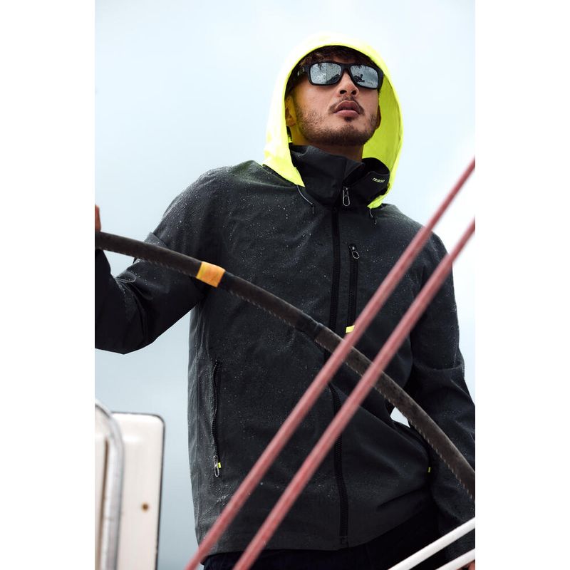 Para acompanhar nas navegações com vento e umidade, este casaco masculino é impermeável e corta-vento A gola alta forrada com fleece, as abas e o capuz envolvente proporcionam proteção contra o vento e a chuva.