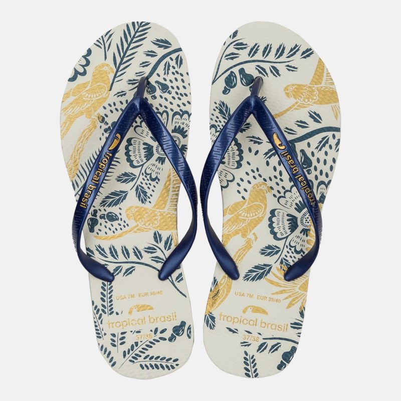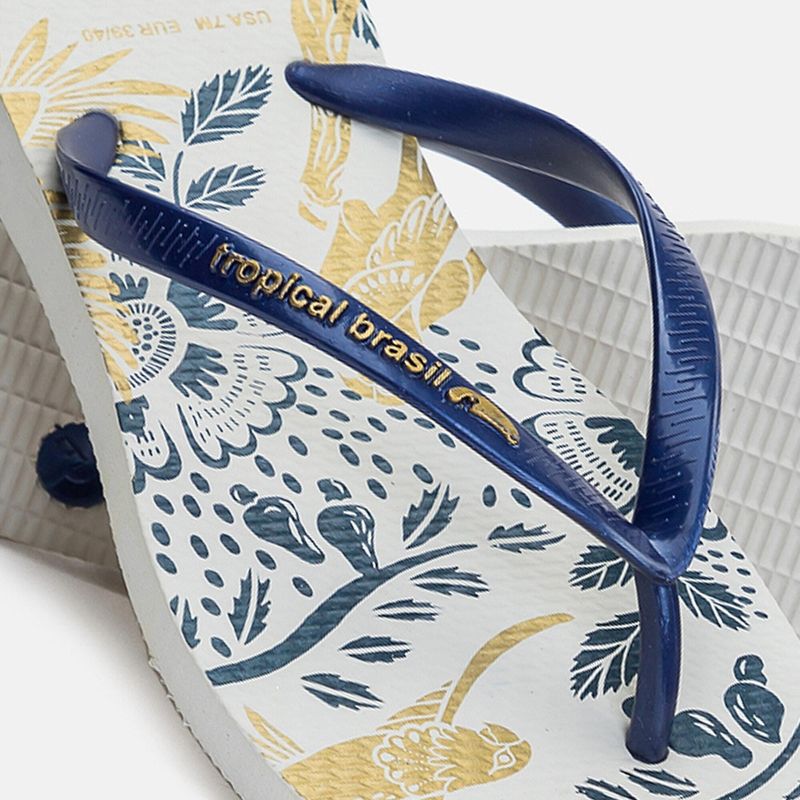 Apresenta uma estampa vibrante e tropical que captura o espírito do Rio de Janeiro.Perfeito para um visual de verão confortável e elegante. Uma estampa tropical vibrante e um solado confortável e durável fazem deles o acessório perfeito para os dias quentes, oferecendo um visual elegante e descontraído para qualquer ocasião casual.