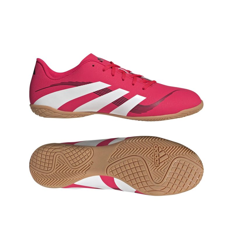 Quando o golo está na tua mira, as adidas Predator convertem a pressão em precisão. A parte superior sintética leve destas sapatilhas de futsal exibe um verdadeiro estilo Predator. A sola de borracha aderente agarra-se ao solo do pavilhão para manteres o teu jogo no ponto.