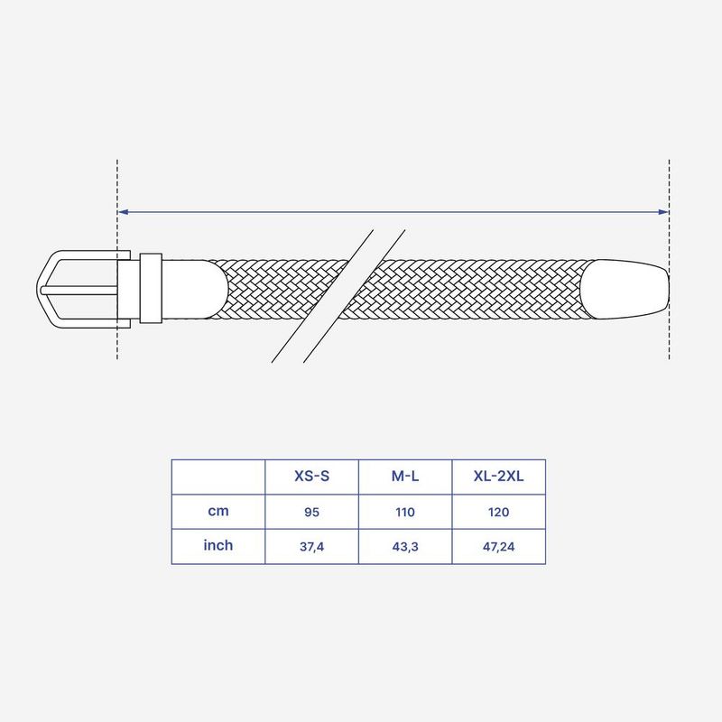XS/S :comprimento do cós de 95 cm, se o tamanho de sua calça for entre 34 e 38 M/L :Comprimento do cós 110 cm, se o tamanho de sua calça for entre 40 e 44 XL/2XL :Comprimento do cinto de 120 cm, se o tamanho de sua calça for entre 46 e 48 Largura da correia :3 cm Fivela com pino :cor do metal