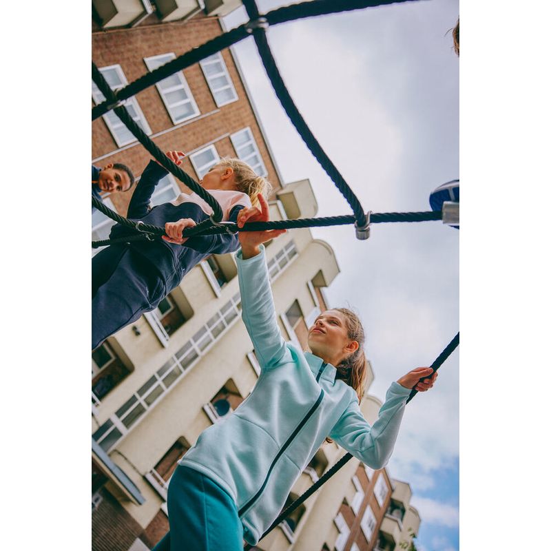 Conjunto de treino de ginástica básico e quente. O cunjunto de treino GYM'Y acompanha uma calças e uma blusa de moletom com fecho.É um conjunto perfeito para ser usado o dia inteiro e para descobrir o esporte na escola.