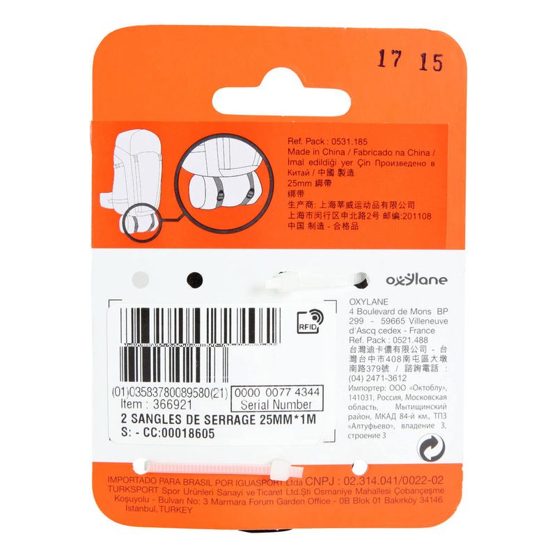 Buckle (for mask) : 100.0% Poliamida Correia : 100.0% Polipropileno (PP)