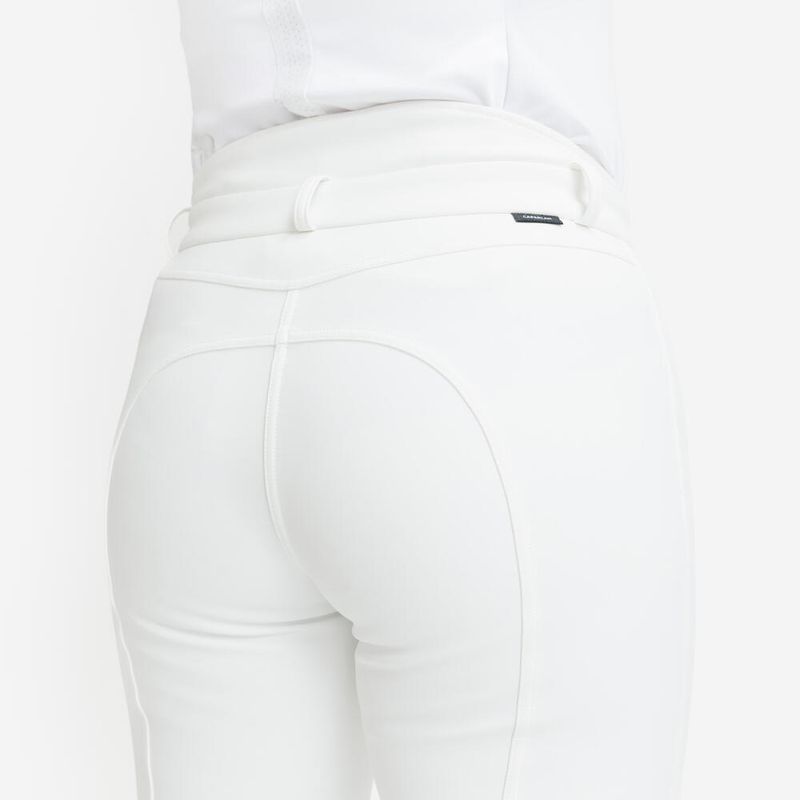 O tecido bi-elástico e a lycra acompanham todos os seus movimentos a cavalo.