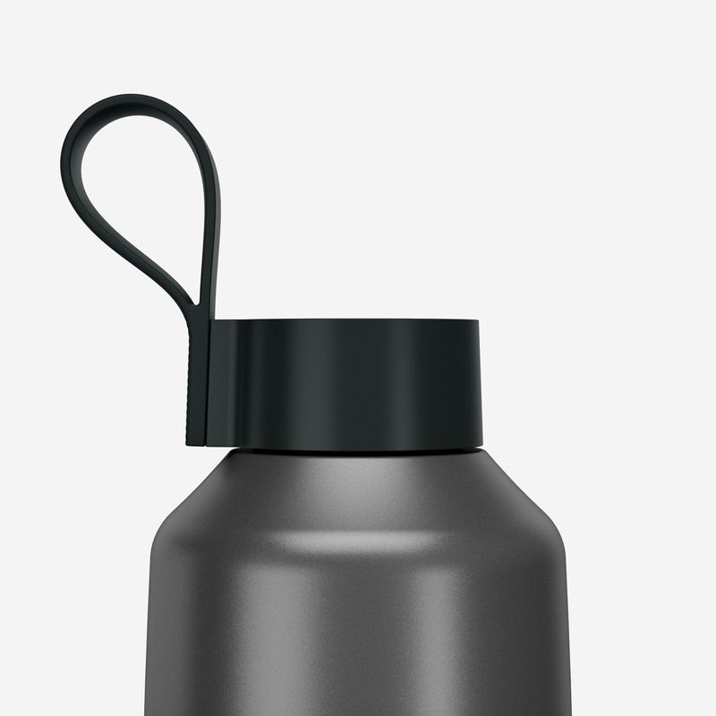 A tampa possui um orifício que permite carregar a garrafa na mão ou prendê-la com um mosquetão. O gargalo é largo (Ø 3,6 cm), o que facilita na hora de encher e limpar. Se você não curte gargalos largos, pode optar por outro tipo de tampa, como a MH500. Este produto é compatível com outras tampas da linha, vendidas separadamente: Tampa MH500 (referência 8575855), para um visual e uso mais esportivos Tampa MH100 em aço inox (referência 8575855)