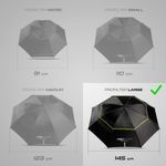 Guarda-chuva compacto, resistente e com fator de proteção UV50+, desenvolvido para te proteger da chuva e do sol em seus percursos durante a prática do golf. Esse modelo conta com abertura automática feita por meio de um botão de pressão, diâmetro de 145 cm para uma boa cobertura, além do fio tingido na origem que limita o consumo de energia, água e tinta.
