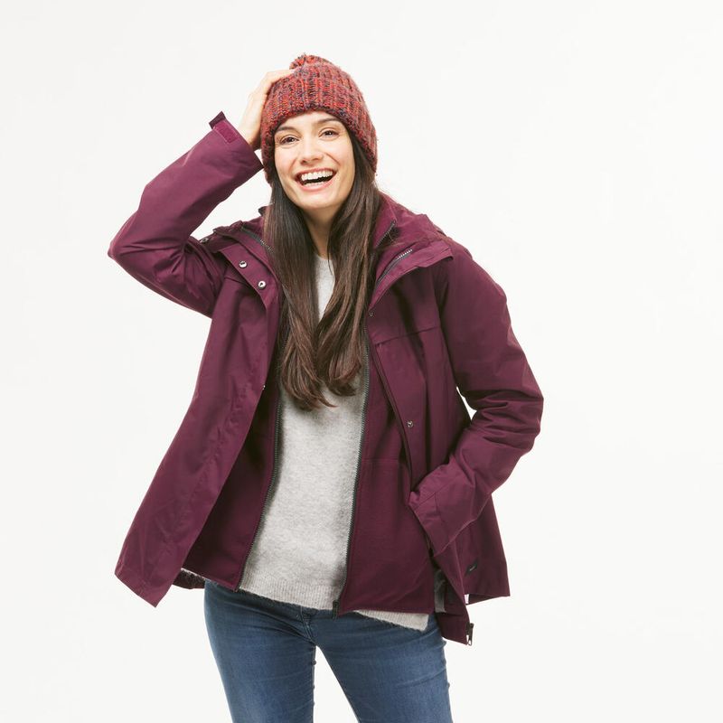 RoupasSuperioresJaquetasJaqueta 3 em 1 Feminina Trilha 100 Impermeável Térmica Quechua Vinho