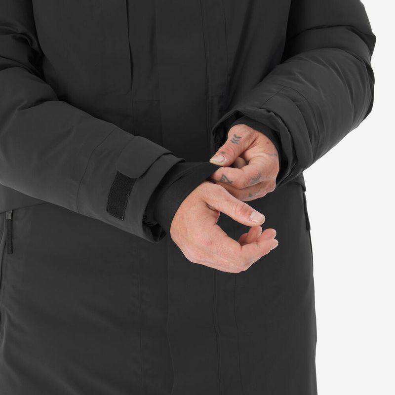 Essa parka foi projetada com um componente impermeável revestido (padrão JIS 1092) que resiste a 15.000 mm H20 (Schmerber), ou seja, a pressão exercida por 15 metros de coluna de água por centímetro quadrado de tecido.As costuras 100% seladas impossibilitam a penetração de água.