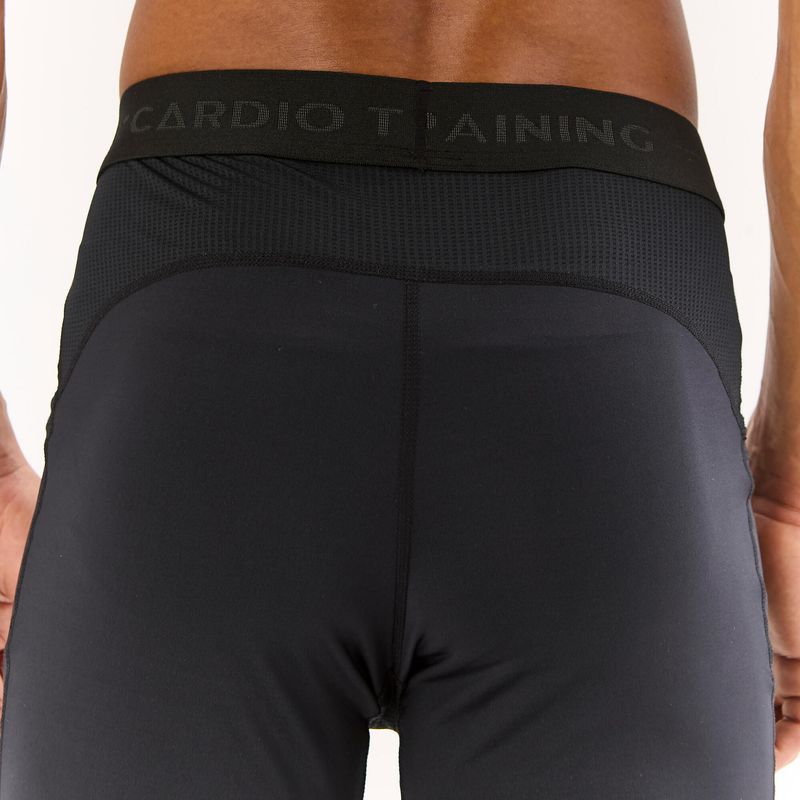A tecnologia do tecido favorece a evaporação rápida do suor, contribuindo para manter o corpo seco e confortável mesmo em sessões exigentes de cardio training.
