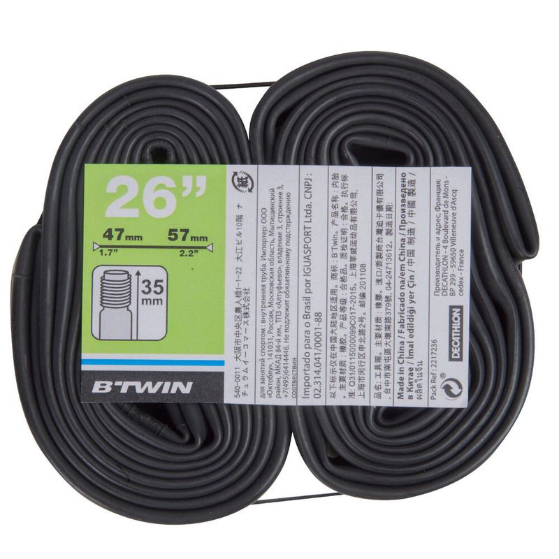 Lote 2 Câmara de ar para pneu 26 polegadas 1.7 a 2.2 Válvula Schrader Btwin