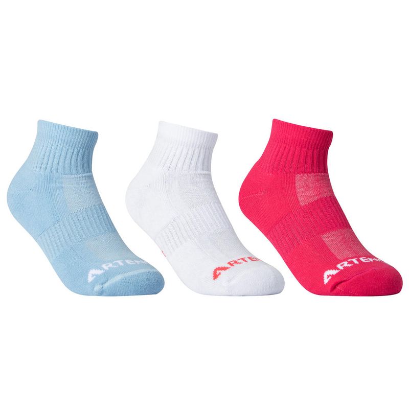 Graças à malha turca, o tecido é mais espesso e mais macio, fornecendo-lhe nesse local maior resistência e conforto. Aplicámos nesta meia de ténis uma zona de malha piqué no peito do pé para permitir uma melhor eliminação da transpiração.