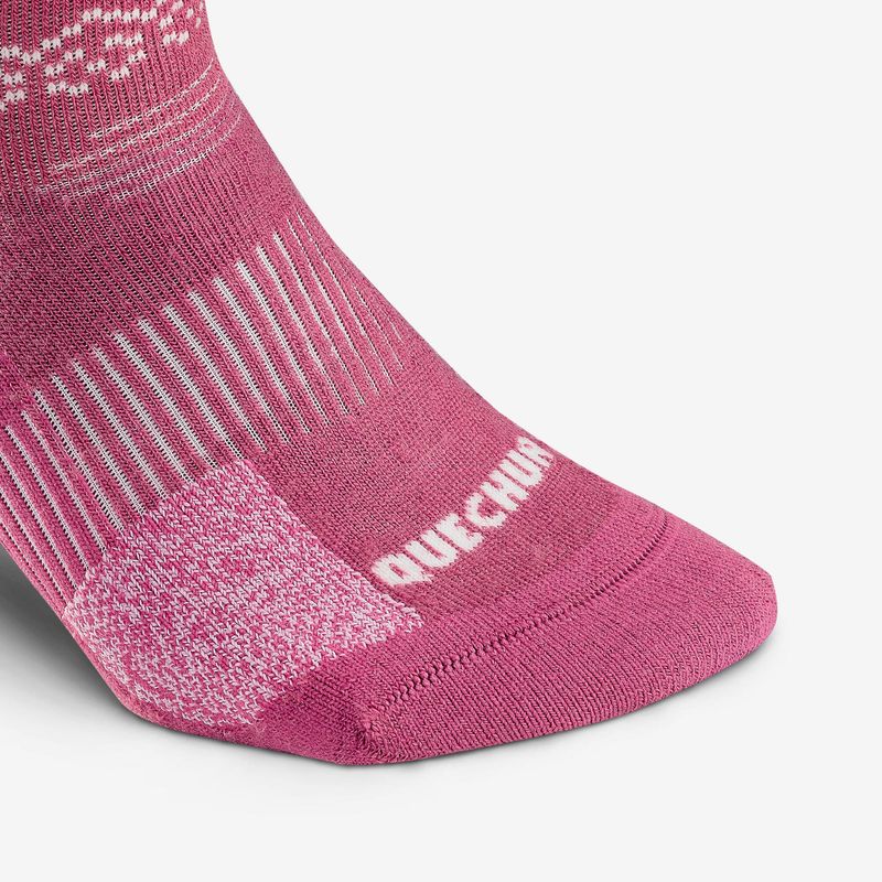 CalçadosMeiasMeiasMeias Quentes para Trilha Sh500 Mid - Pacote (2 Pares) Quechua Verde/Rosa