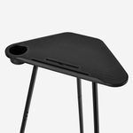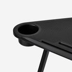 Na superfície da mesa encontras: - Dois entalhes, um para o telefone e o outro para o tablet, concebidos para utilizadores exigentes; existe um furo no fundo dos entalhes, para que possas carregar os teus aparelhos. - Um porta-cantil - Uma superfície elegante para o computador