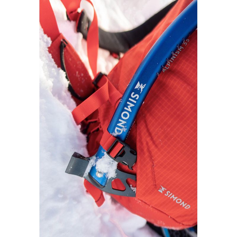 - 2 suportes para machado de gelo - Bolso frontal externo para balde de pá, jaqueta ou peles - Alças para transportar esquis, pranchas de snowboard e raquetes de neve - Bolso para hidratação:2 ganchos, passagem de pipeta - Suporte de equipamento no cinto - Rede para capacete (removível e armazenada em um pequeno bolso, há duas posições possíveis na bolsa) - Suporte para frasco de 500 ml na alça de ombro - Bolsos internos para tubo de pá e sonda