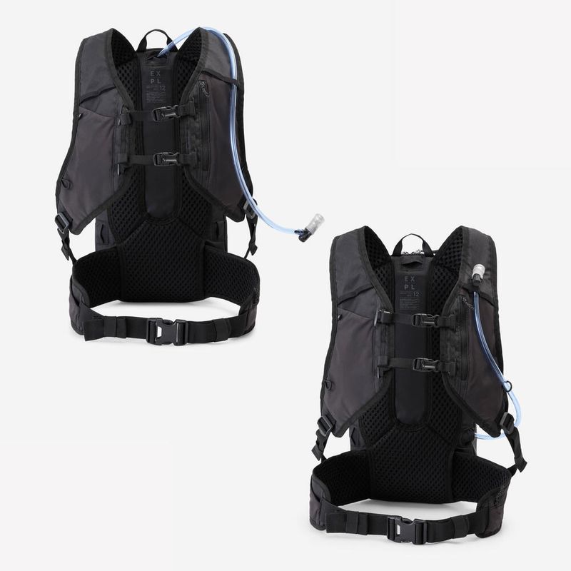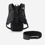 Tipo de saco: mochila de hidratação Capacidade útil da mochila: 12 L Capacidade de água: 2 L Bolsa de água com barra de fecho, tubo e tetina incluídos 5 bolsos ou redes interiores 1 bolso seguro na alça exterior, para o telemóvel 1 bolso na alça para óculos 1 correia elástica para a bomba 1 inserção para luz led traseira com clipe 2 correias peitorais 1 cinto ventral amovível repelente de água 1 capa para chuva