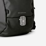 Marcação e banda refletora na mochila e na capa para chuva. Passador para fixar uma luz led.