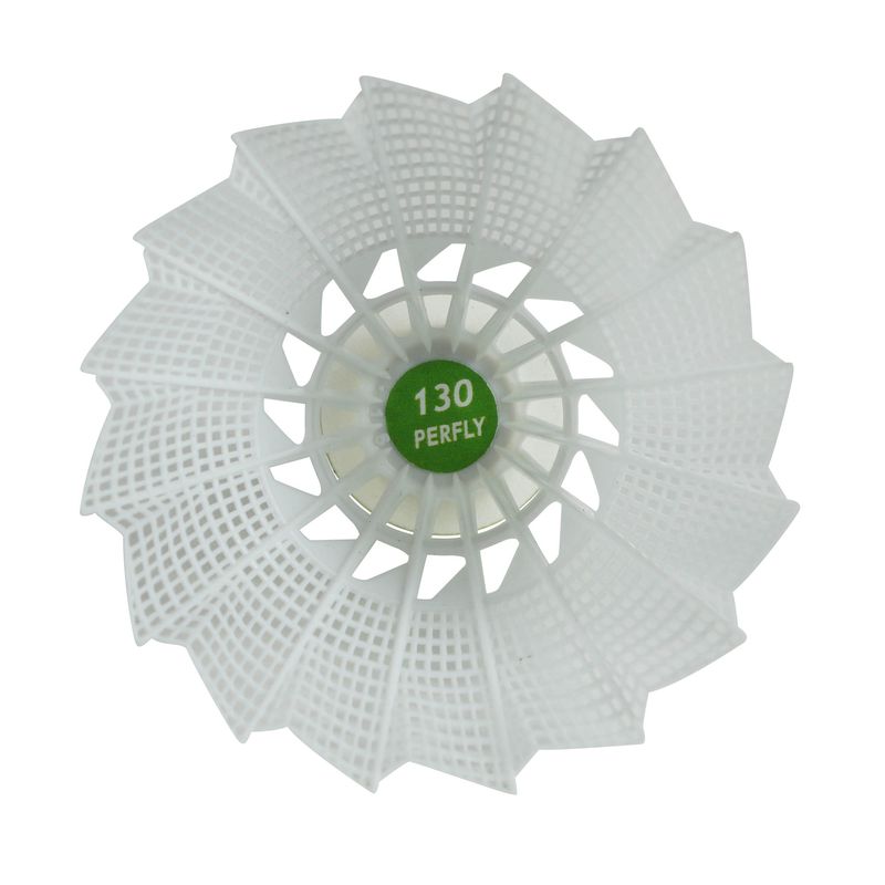Jogador iniciante de badminton procurando um volante para jogar ao ar livre com condições de vento. É altamente resistente e oferece todo o conforto de um volante de plástico básico. Cada cor corresponde a um peso: