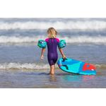 Desenvolvida para andar e deslizar na rebentação fraca na orla da praia, produto deve ser usado onde a criança tem pé, com água ao nível da cintura. Ao passar por uma rebentação pouco forte (<50cm), a criança empurra com a ajuda dos pés em direção à praia e deita-se na prancha de bodyboard de barriga para baixo, mãos nas alças, braços dobrados e pernas estendidas para trás. Não é necessário usar pés de pato.A textura do tecido permite um contato agradável com a pele.
