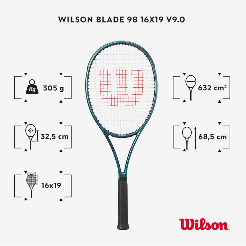 Esta raquete foi desenvolvida para jogadores(as) de tênis de nível avançado que buscam precisão e estabilidade. Raquete vendida sem encordoamento. A Wilson Blade 98 16x19 V9 é um verdadeiro exemplo de controle e estabilidade. O pequeno encordoamento de 632 cm² e a "45 LAY UP TECHNOLOGY" proporcionam uma precisão extrema!