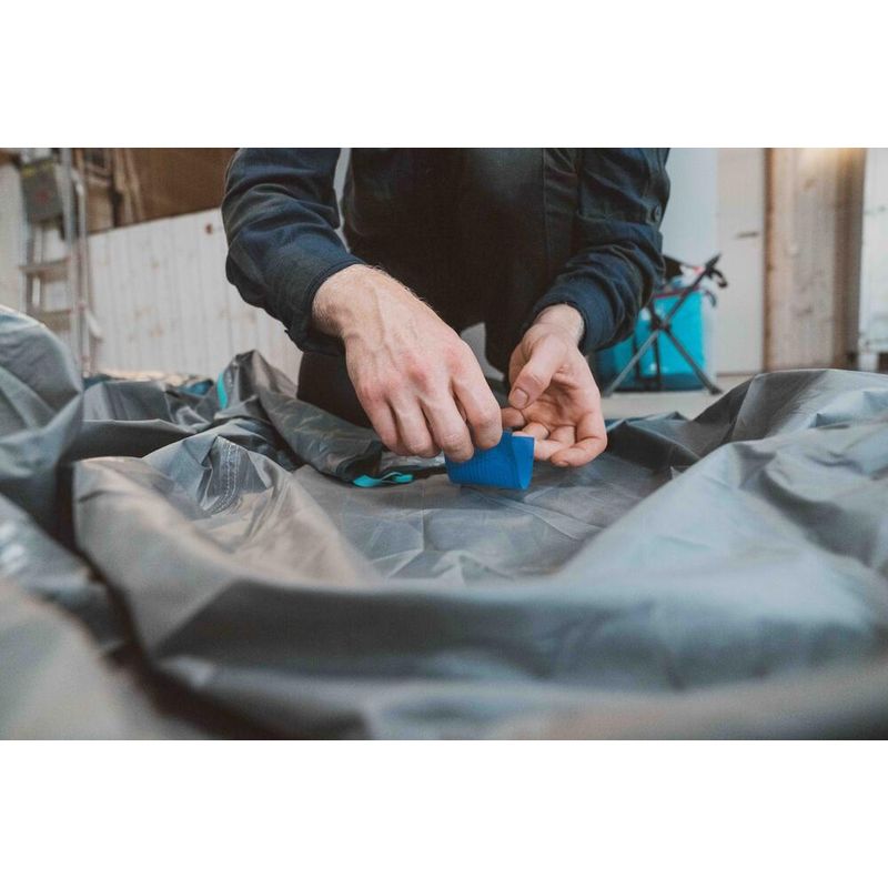 Rolo adesivo para reparar furos e rasgões em: tendas, sacos-cama, mochilas, casacos de penas, calçado, etc. Uma fita adesiva universal, impermeável e resistente para reparações múltiplas e rápidas. Cola muito potente que se aplica numa grande variedade de materiais.