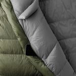 O capuz anatômico com cordão de ajuste e a aba anti-frio ao longo do zíper evitam a perda de calor. O zíper YKK bidirecional com sistema antiperfuração garante boa ventilação Um bolso interno com zíper armazena itens pequenos. Duas alças na parte inferior do saco de dormir permitem pendurá-lo para arejá-lo ou secá-lo. Fornecido com uma capa de armazenamento de tecido perfurado.